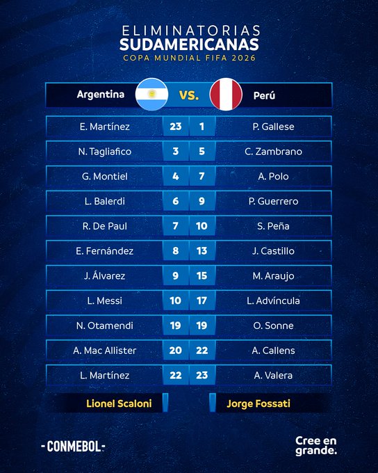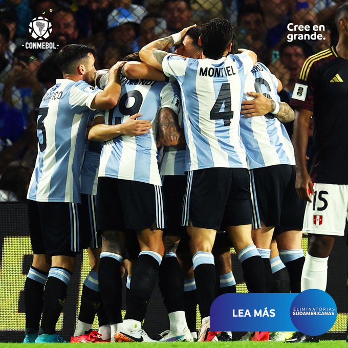 Con el triunfo, Argentina es primera con 25 puntos y quedรณ cerca de la clasificaciรณn al Mundial mientras que Perรบ es รบltimo con 7 unidades y debe ganar todo para aspirar a la clasificaciรณn.