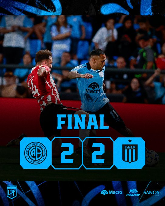 Belgrano empatรณ 2-2 como local frente a Estudiantes de La Plata en un partido correspondiente al torneo argentino. El atacante peruano Bryan Reyna ingresรณ en el segundo tiempo y fue clave para su equipo, marcando un golazo que permitiรณ igualar el marcador.