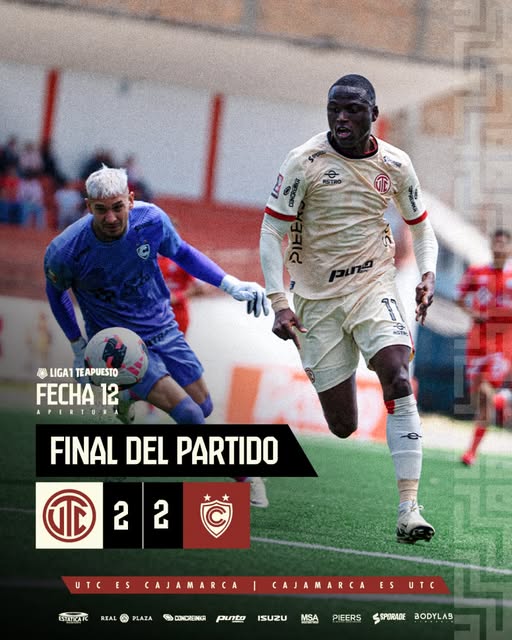 Drama hasta el รบltimo segundo. Cienciano rescatรณ un empate 2-2 frente a UTC en Cajamarca, gracias a un penal convertido en los descuentos que cambiรณ por completo el desenlace del partido.