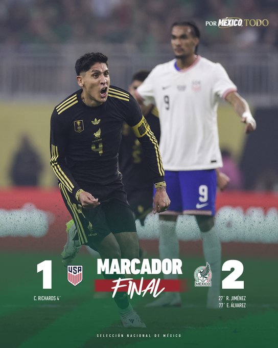 Con el empate, el equipo azteca se adueรฑรณ del ritmo del partido y comenzรณ a generar mรกs peligro. La remontada se concretรณ a los 77′, cuando Edson รlvarez apareciรณ con un potente remate que sellรณ el 2-1 definitivo.