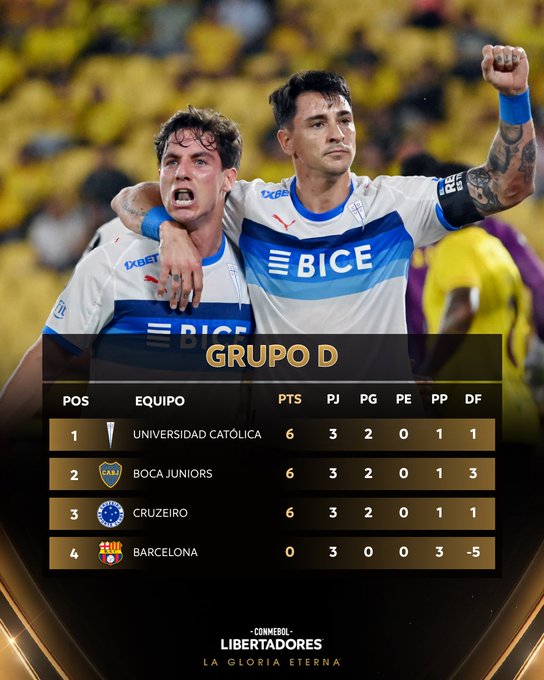 El triunfo dejó a la UC con 6 puntos y en la cima del Grupo D por mejor diferencia de goles sobre Boca Juniors y Cruzeiro. Barcelona, por su parte, continúa en el último lugar sin unidades y con la urgencia de reaccionar en la siguiente fecha.