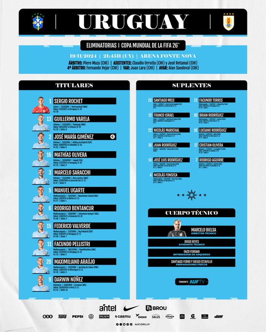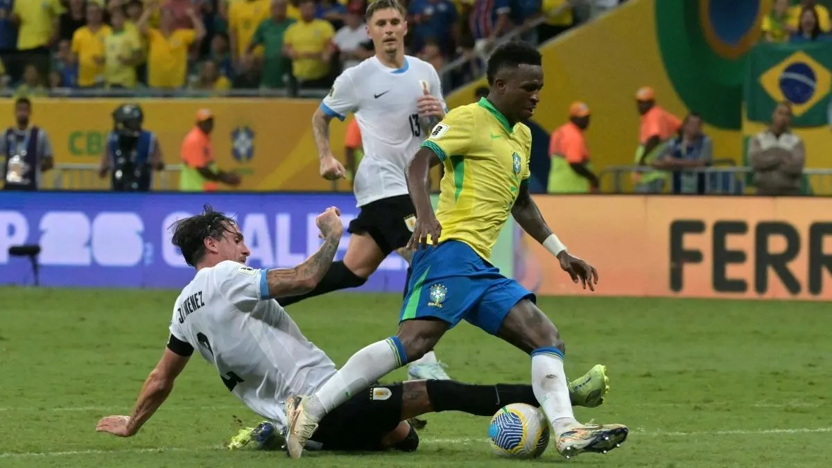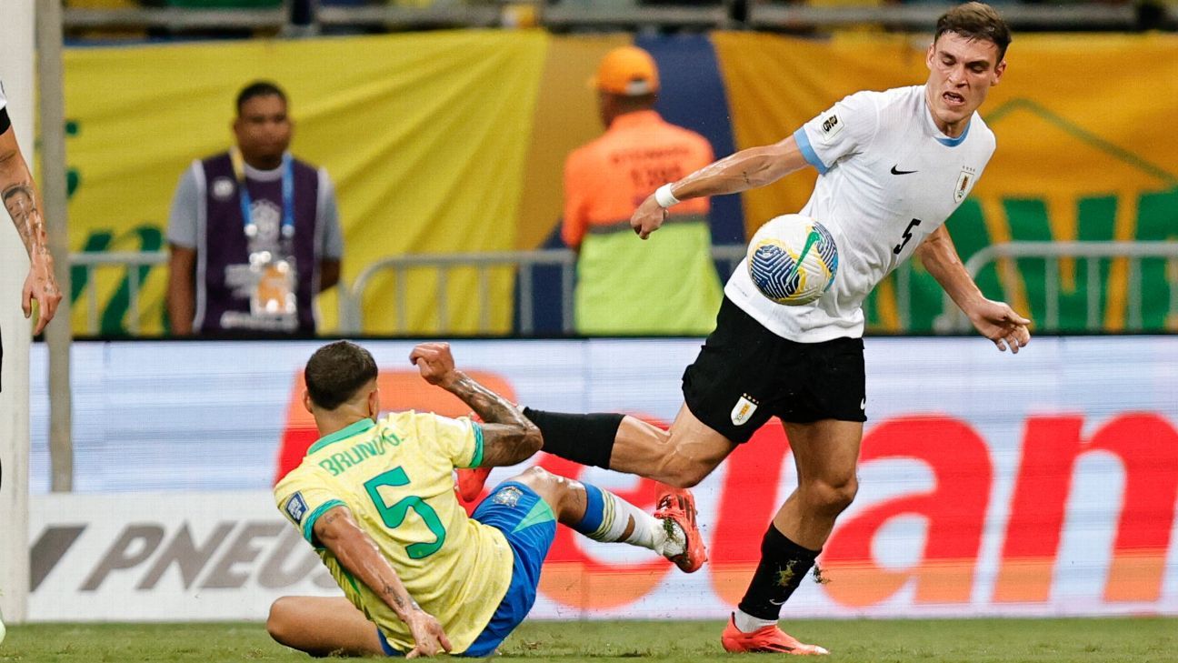 Si bien la Canarinha tuvo mรกs el control y moviรณ el balรณn con profundos cambios de frente, la Celeste llegรณ con mรกs peligro. Si bien Vinรญcius Jรบnior inquietรณ en el amanecer del partido, entre los minutos 20 y 23 los visitantes crearon zozobra a travรฉs de Facundo Pellistri, Marcelo Sarachi y Rodrigo Bentancur.Raphinha apareciรณ imponente con un remate frontal por encima del horizontal, pero en posiciรณn irregular.